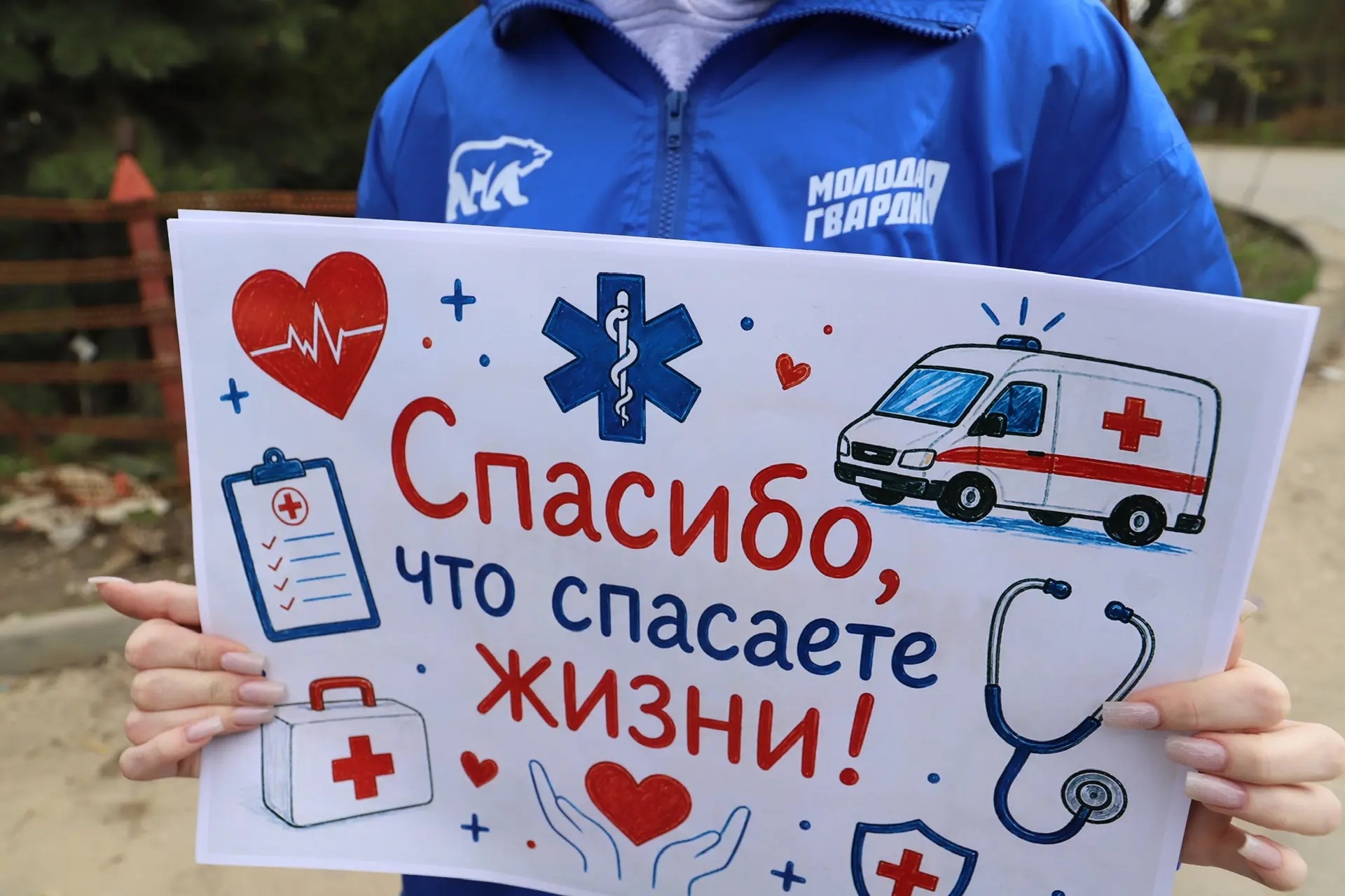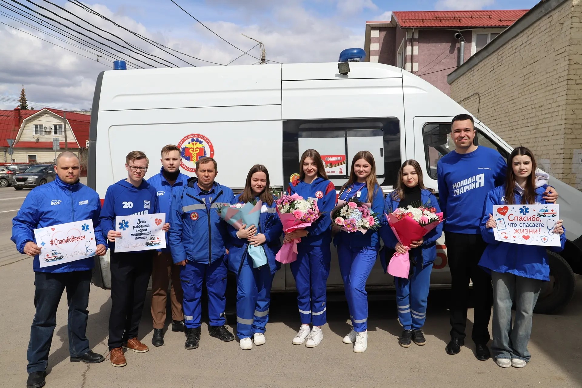 Молодогвардейцы выразили искреннюю признательность сотрудникам скорой помощи за их ежедневный труд и преданность профессии, а также вручили им поздравительные плакаты, цветы и сладкие подарки.
